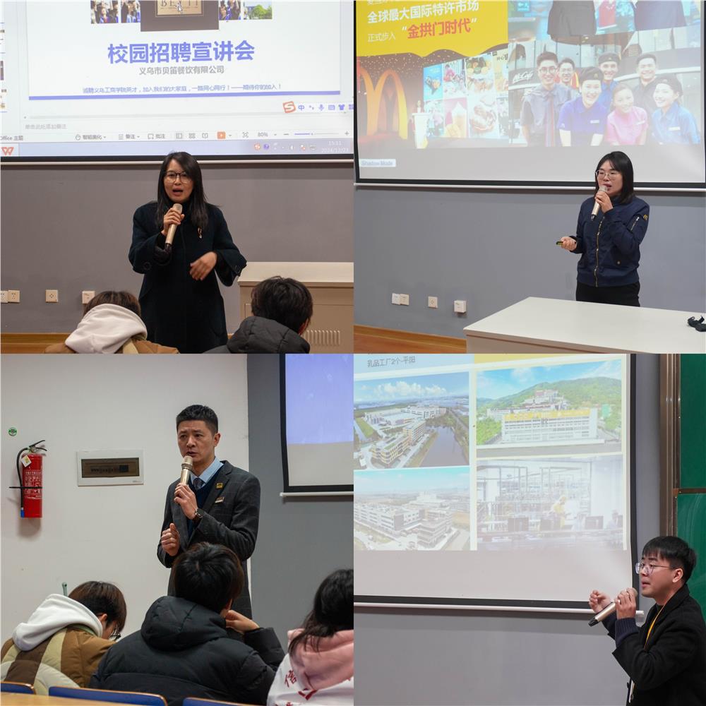 此外,BG大游集团官方网站在阶梯教室二同步举办了企业宣讲会。浙江一鸣食品股份有限公司、杭州屈臣氏个人用品商店有限公司、中国人寿保险股份有限公司等9家企业进行了现场推介,详细介绍了公司情况、岗位需求、晋升路线、薪酬福利等,现场互动热烈。多名低年级员工也参与其中,表示通过宣讲会提前了解就业前景,有助于做好职业规划。