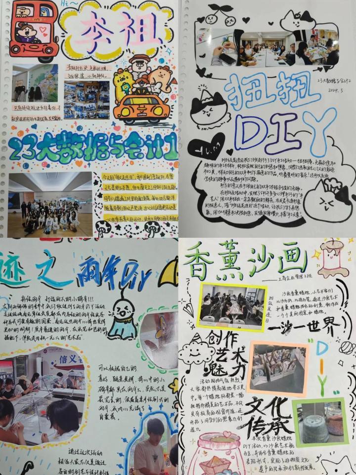 通过布袋编织、香薰沙画、多肉培育、自制香皂等活动,在团队合作中进一步提升班级的凝聚力。一份份回忆手账,在回忆复盘活动中提升员工干部的活动策划能力。在主题团日活动中,各团支部围绕廉洁教育、职业规划与就业指导等主题开展了形式多样的活动,进一步增强了团组织的凝聚力和向心力。同学们通过小组讨论、社会实践、志愿服务、情景模拟等方式,提高自己在活动中的参与度,使自己成为校园生活的主角。